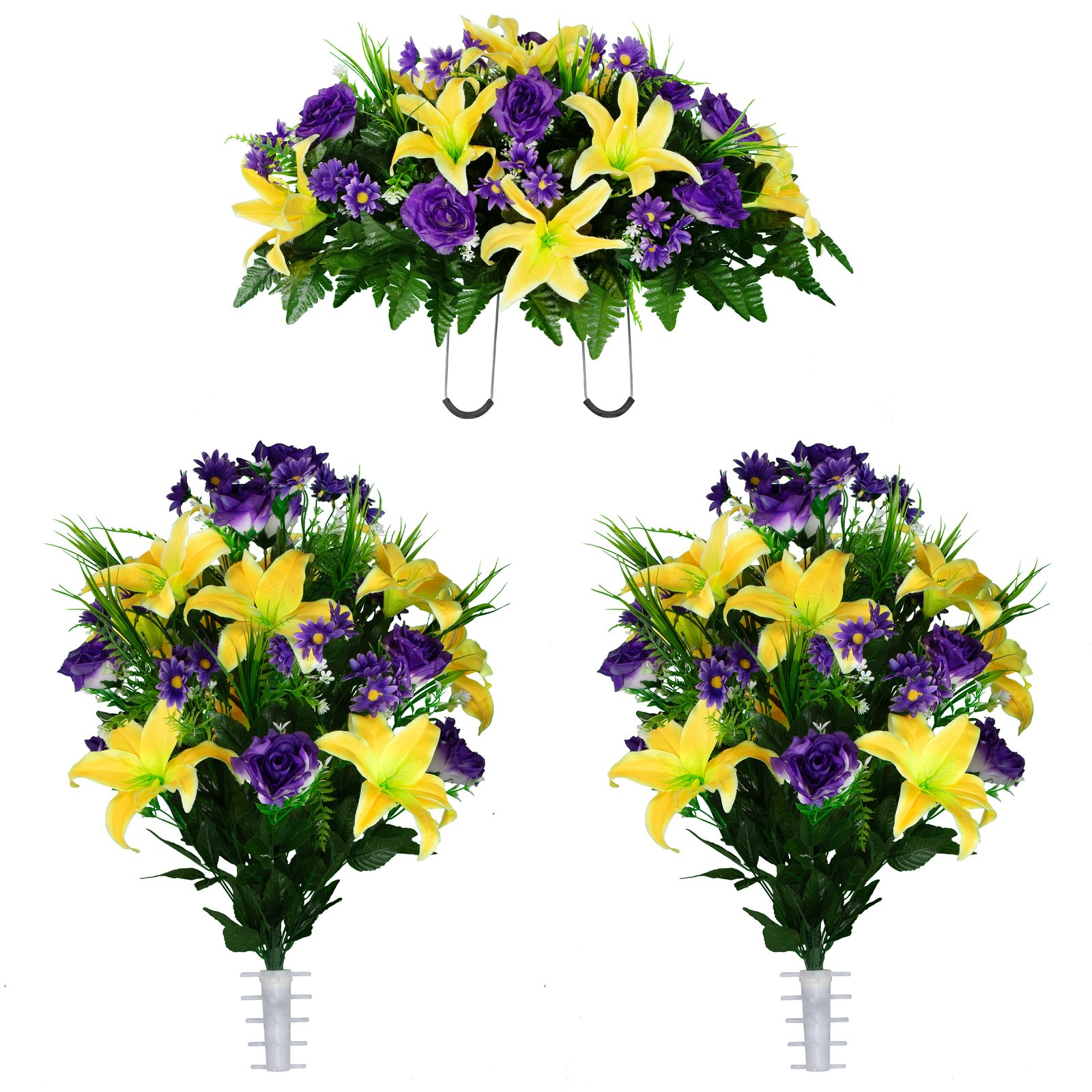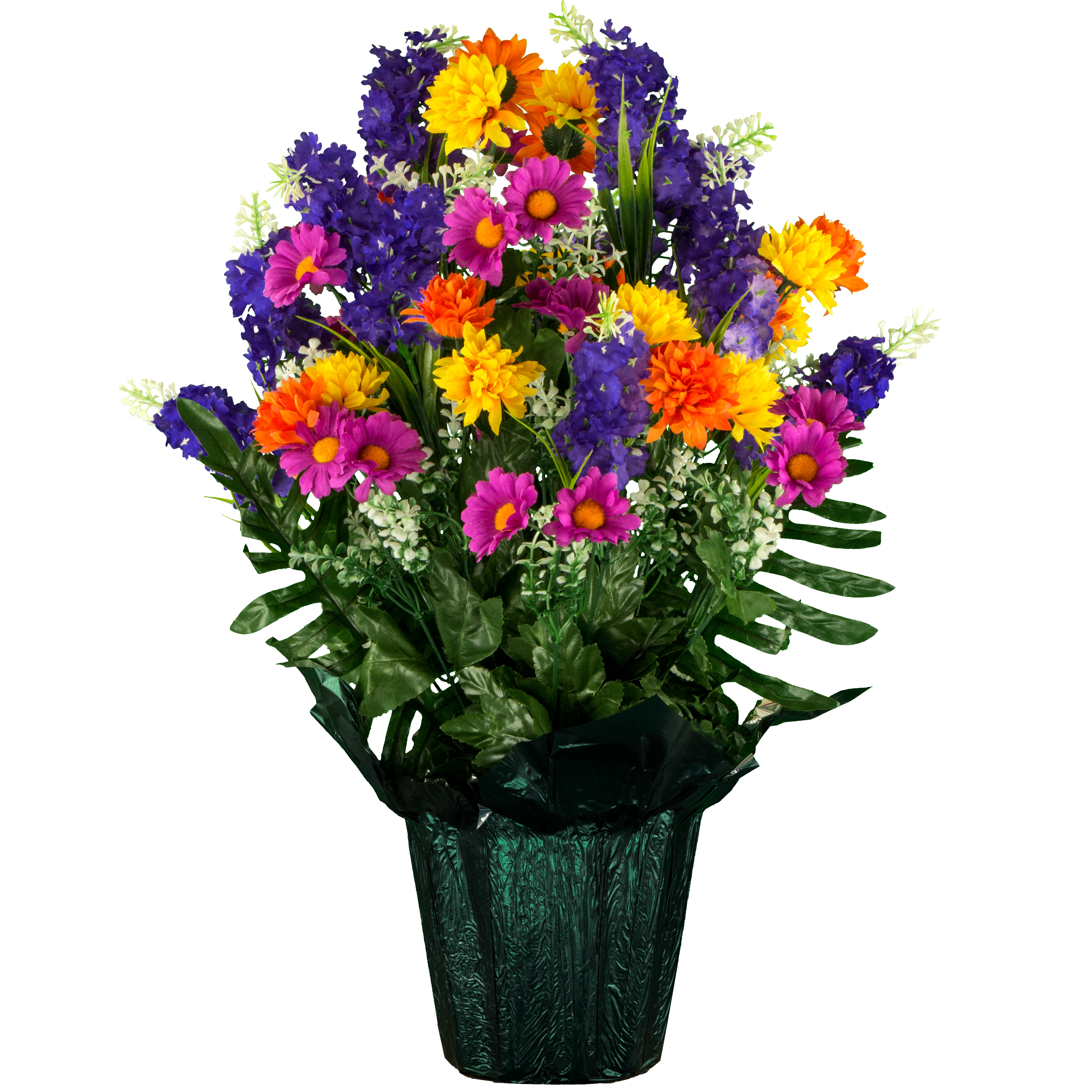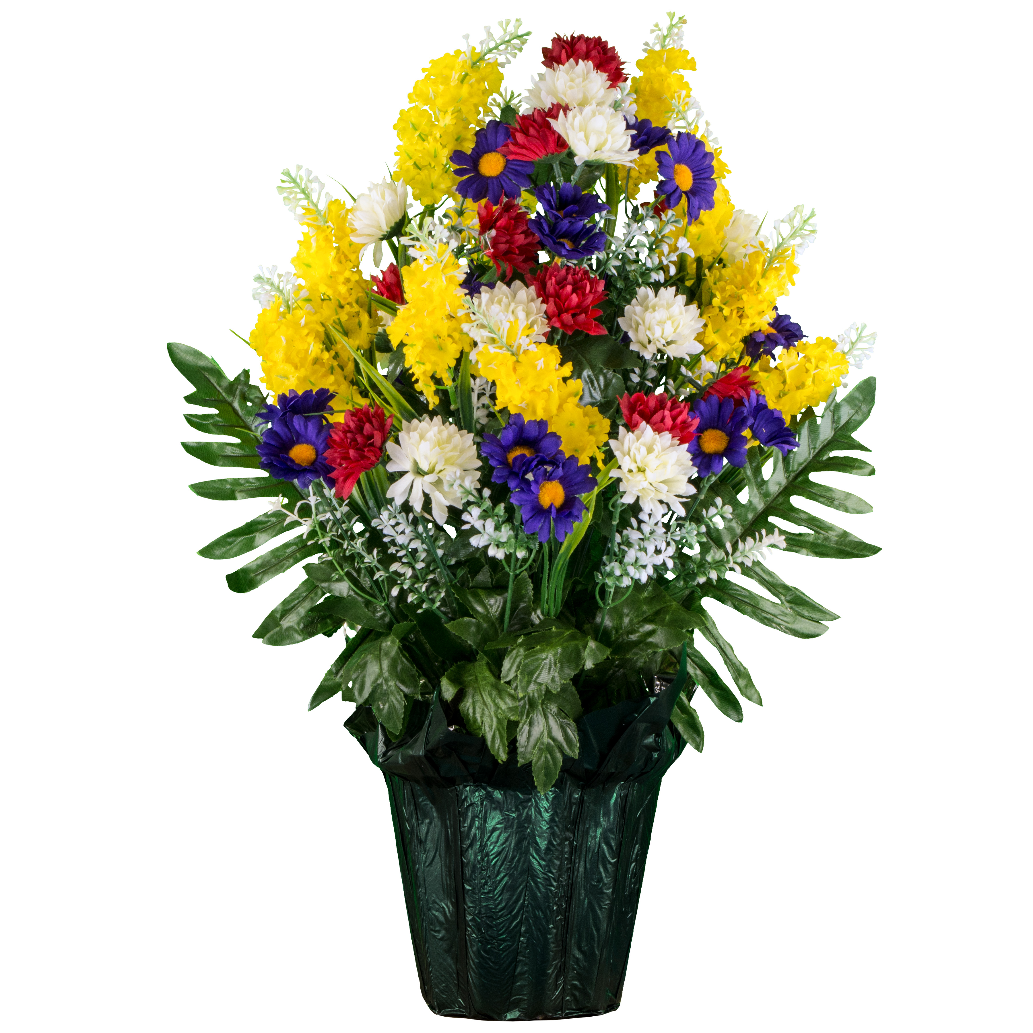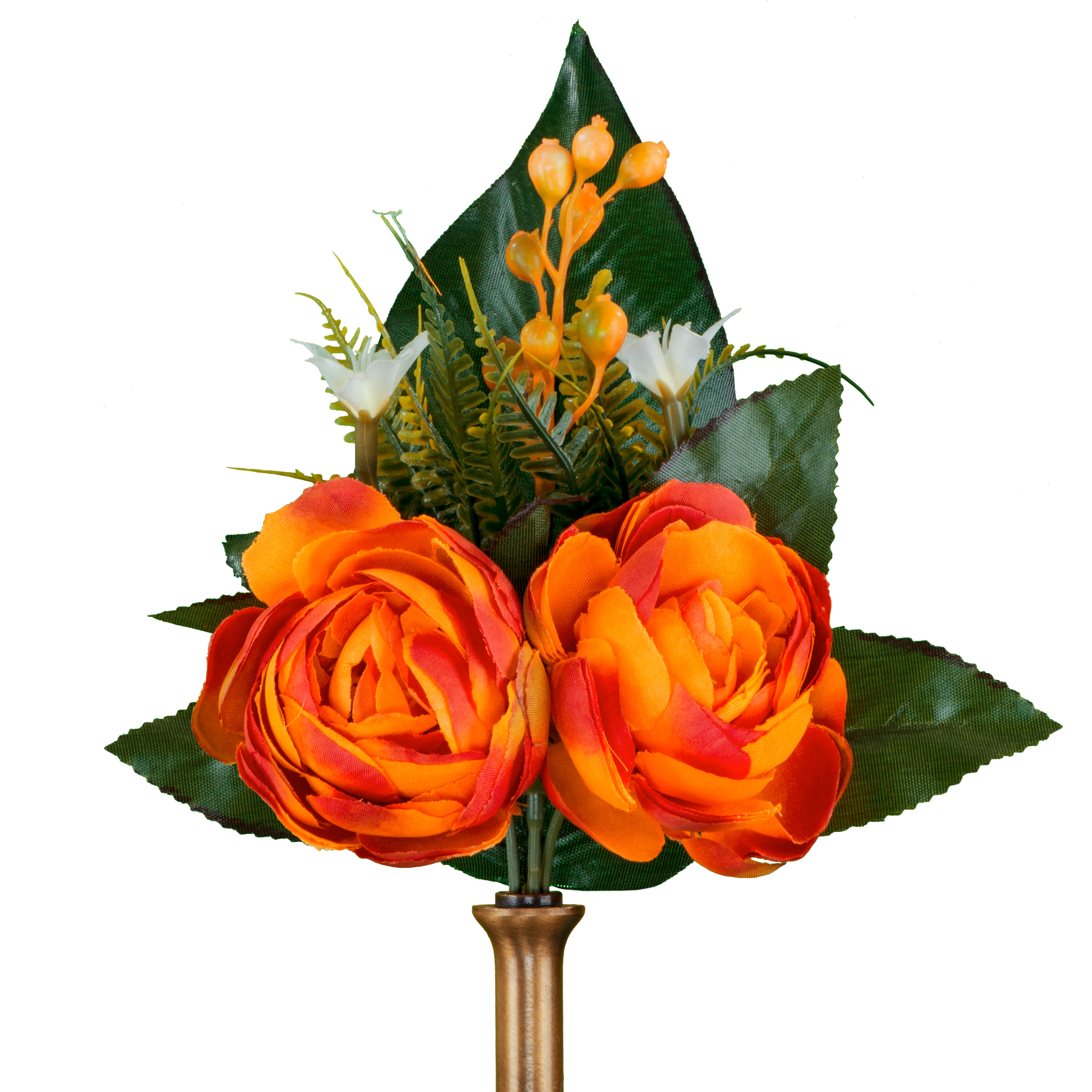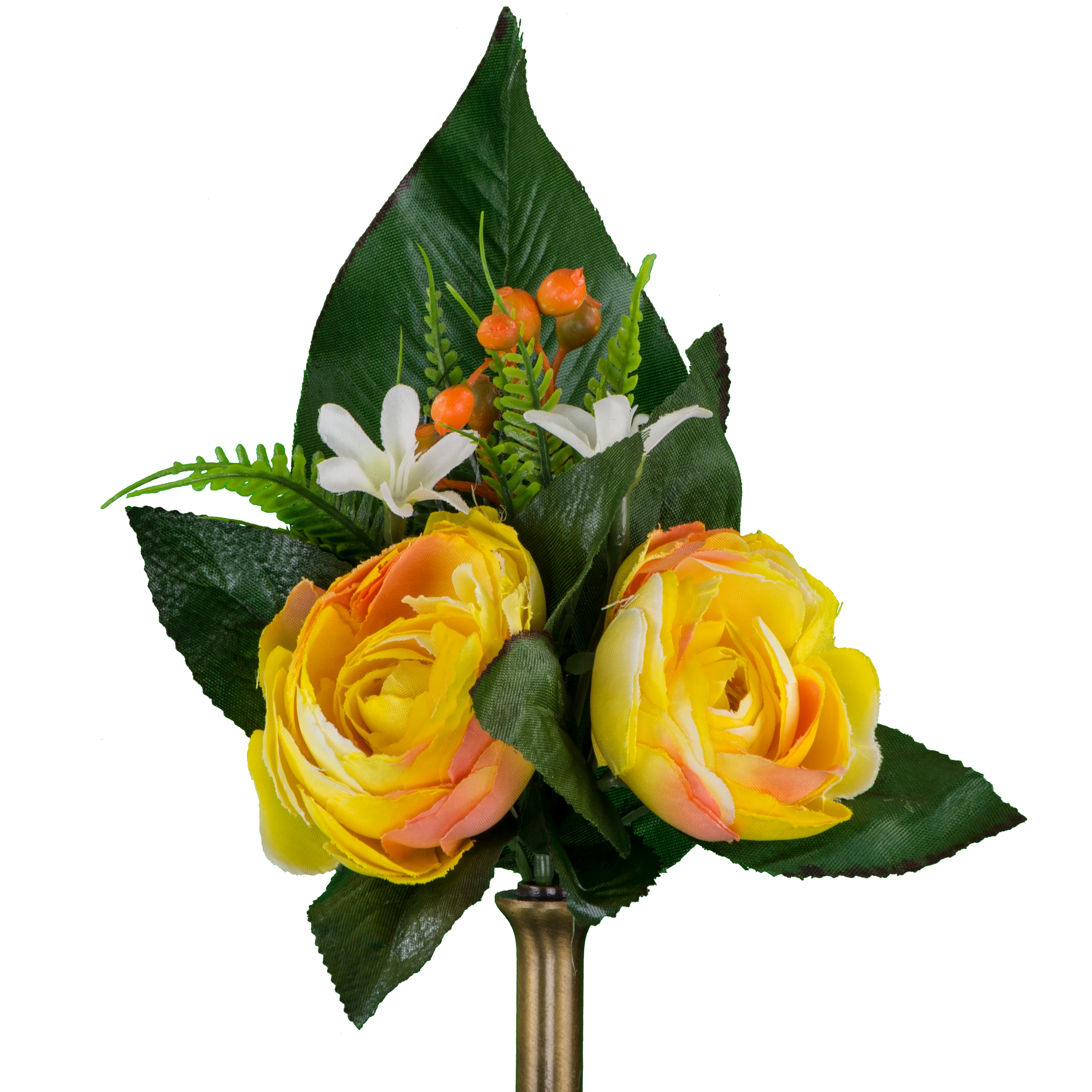 | Yellow Anemone and Orange Mum Garden Mix Bouquet with Sympathy Silks Vase |