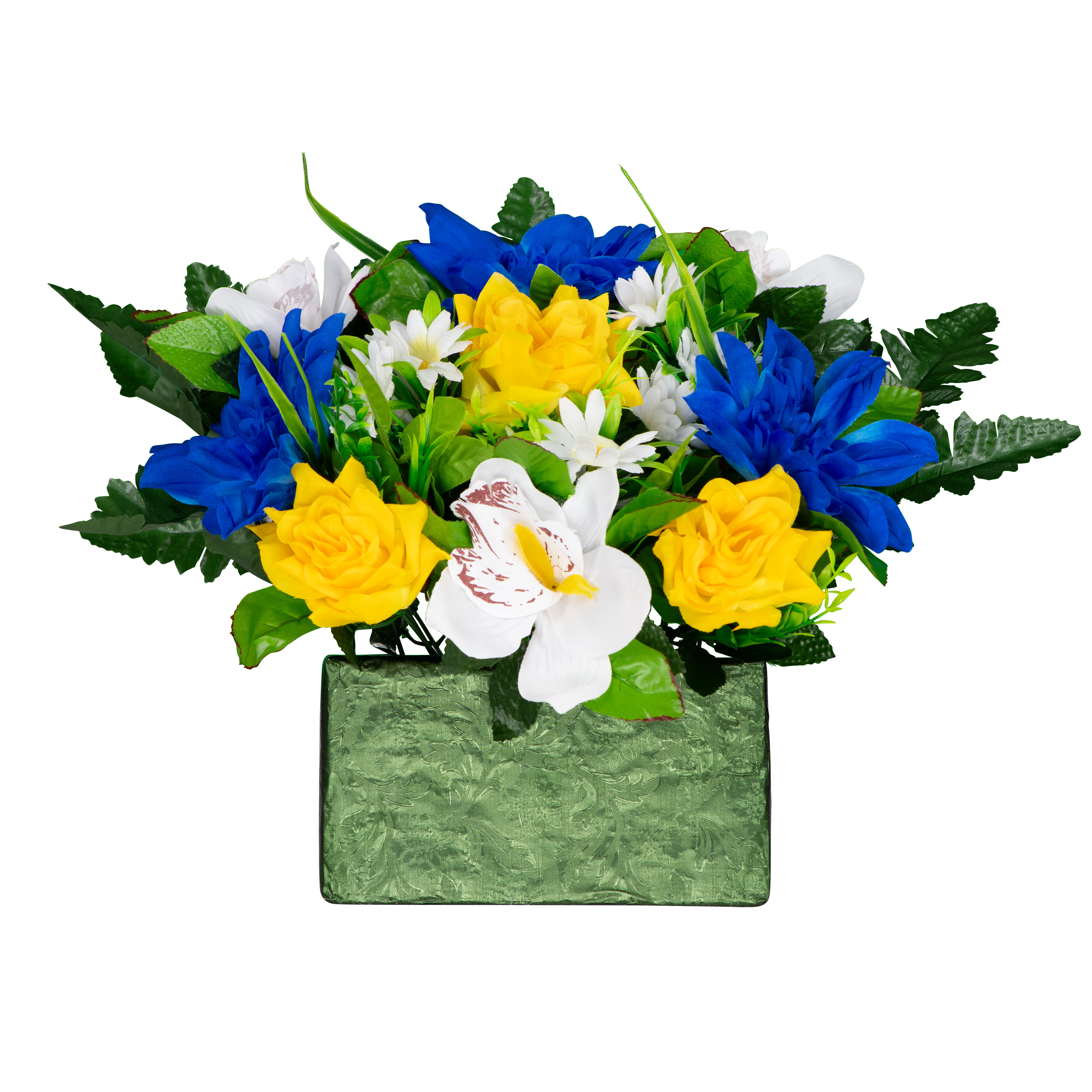 Blue with White Poinsettia and Silver Bow |