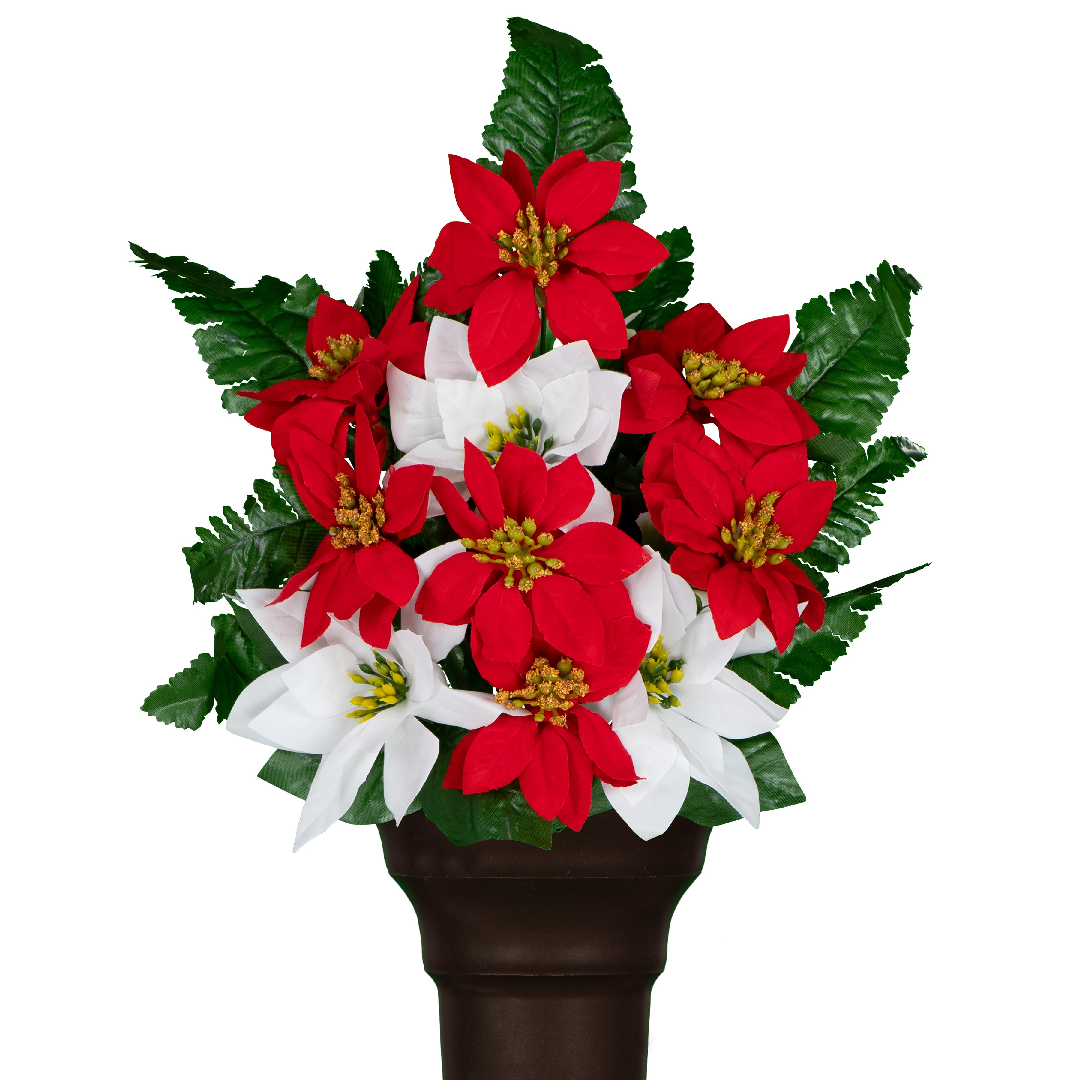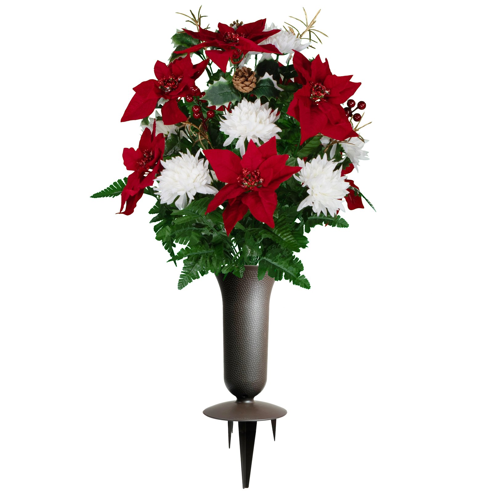 Red and White Poinsettias with Berries and Pinecones |