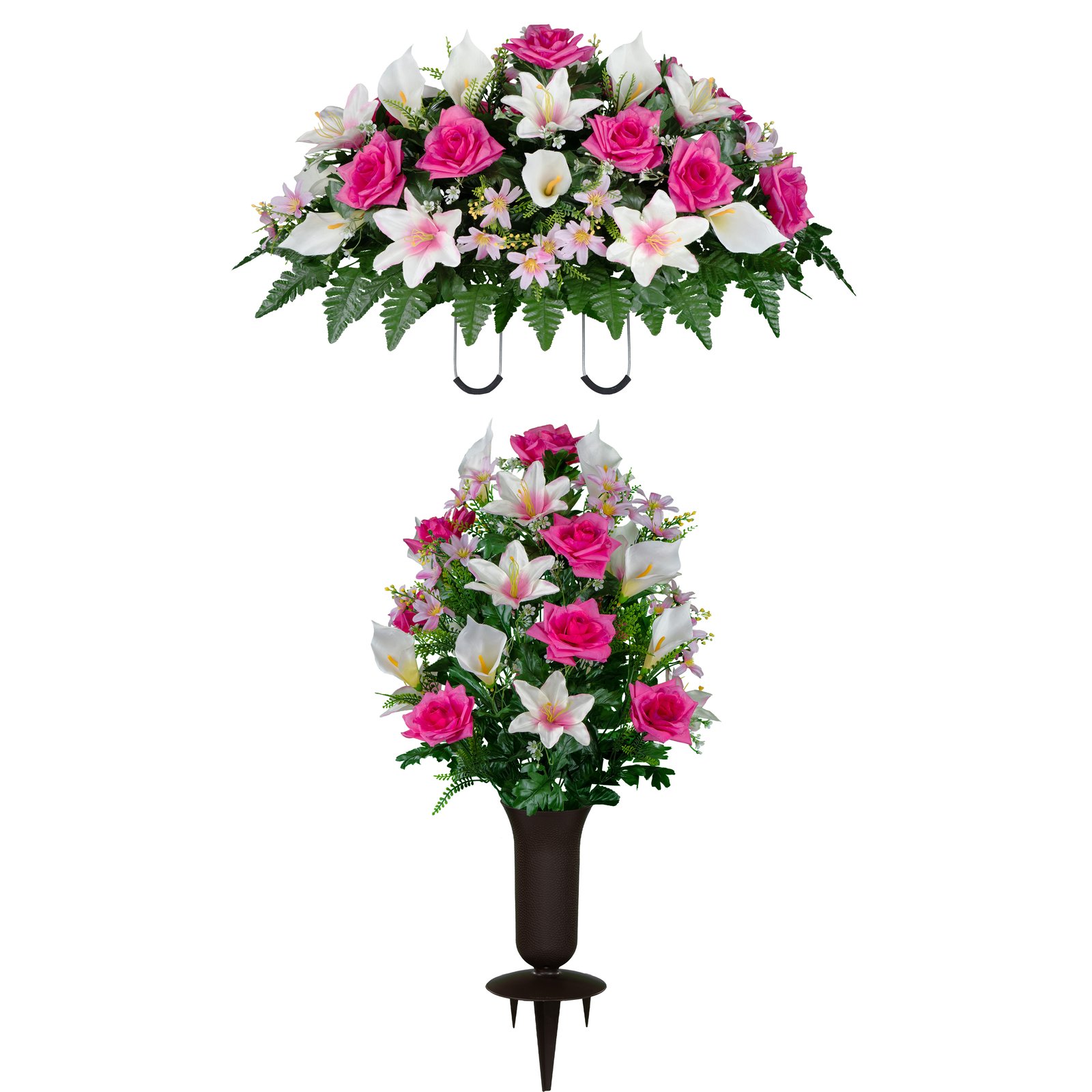 | Pink Anemone Garden Mix Bouquet with Sympathy Silks Vase |