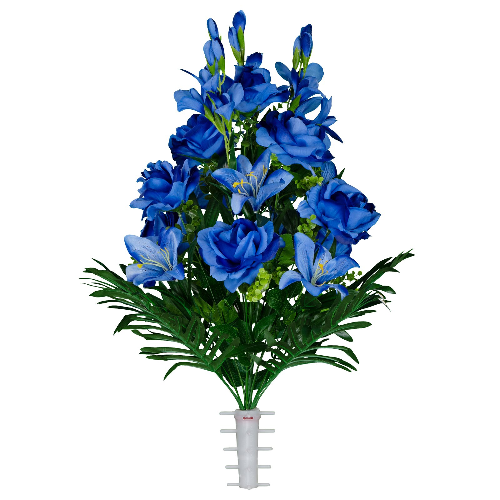Blue and Silver Christmas Tree with Bow with Sympathy Silks Plastic Grave Vase with Spikes |