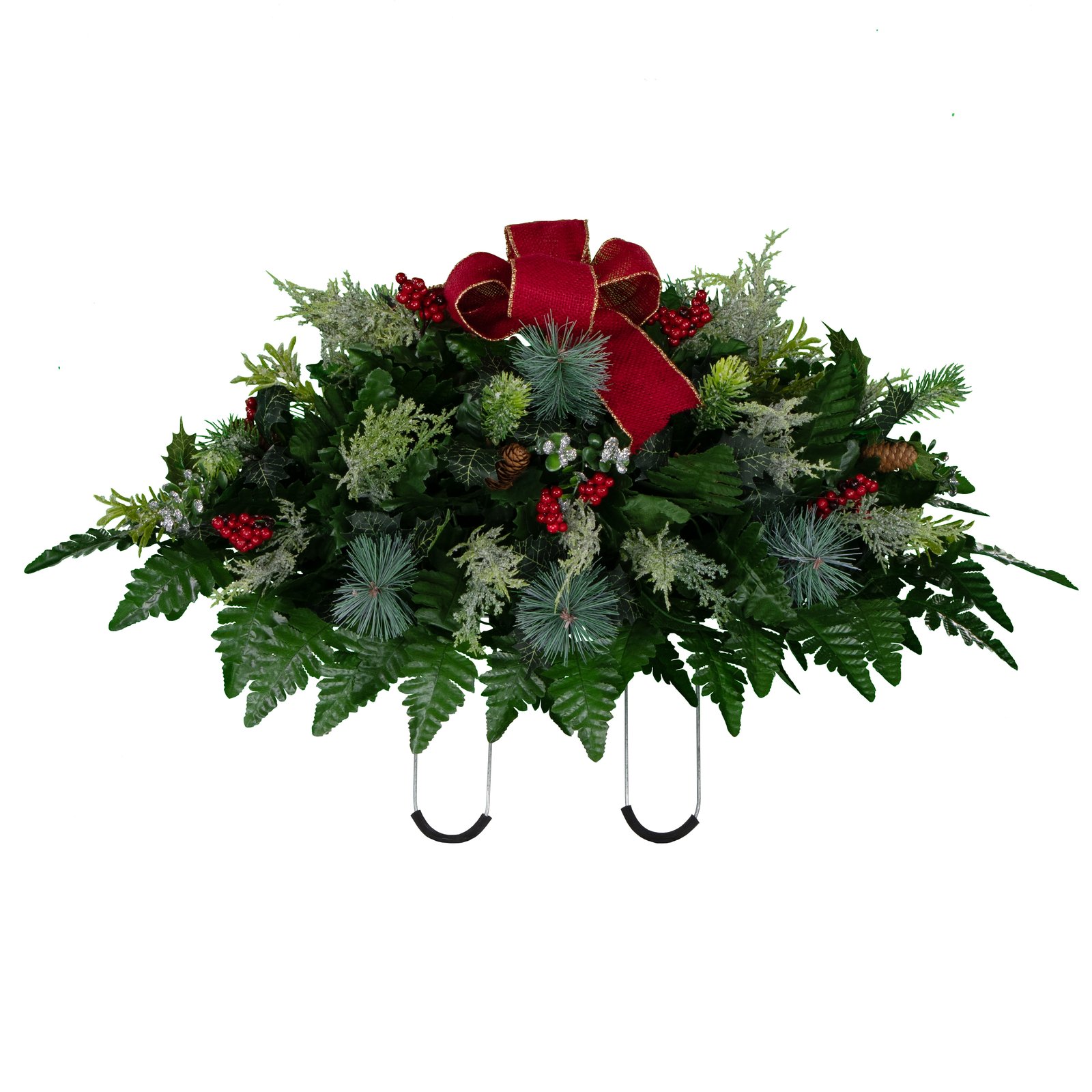 Christmas Evergreen Saddle with Red Burlap Bow |