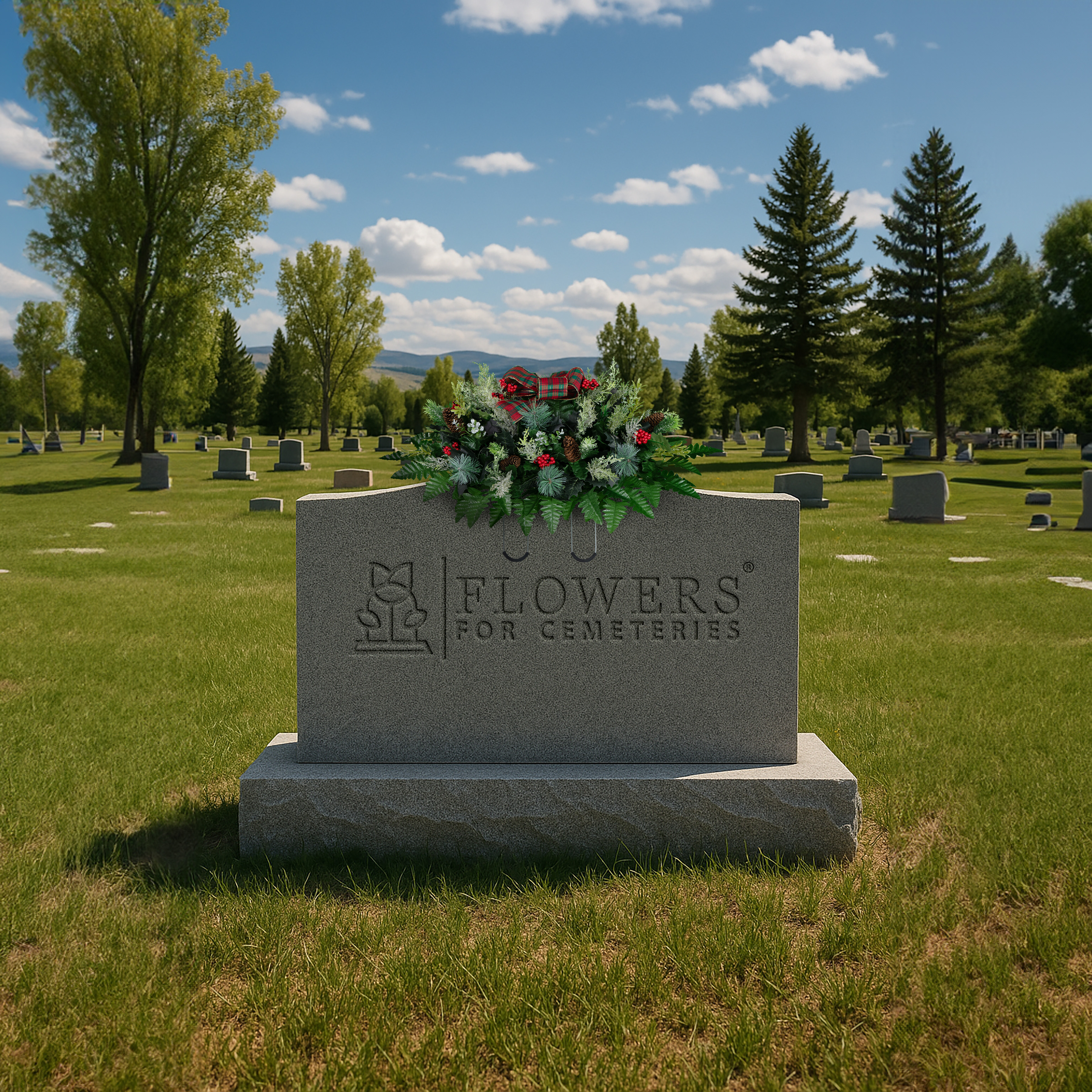 This handmade saddle arrangement is designed using Flowers For Cemeteries, Inc's high quality silk bouquets. The dyes used in the manufacturing process are ultraviolet (UV) resistant and the silk material has been treated to prevent color bleeding when it gets wet. This bouquet is designed to be in a cemetery, exposed to the elements, and still look great after 2 months.
