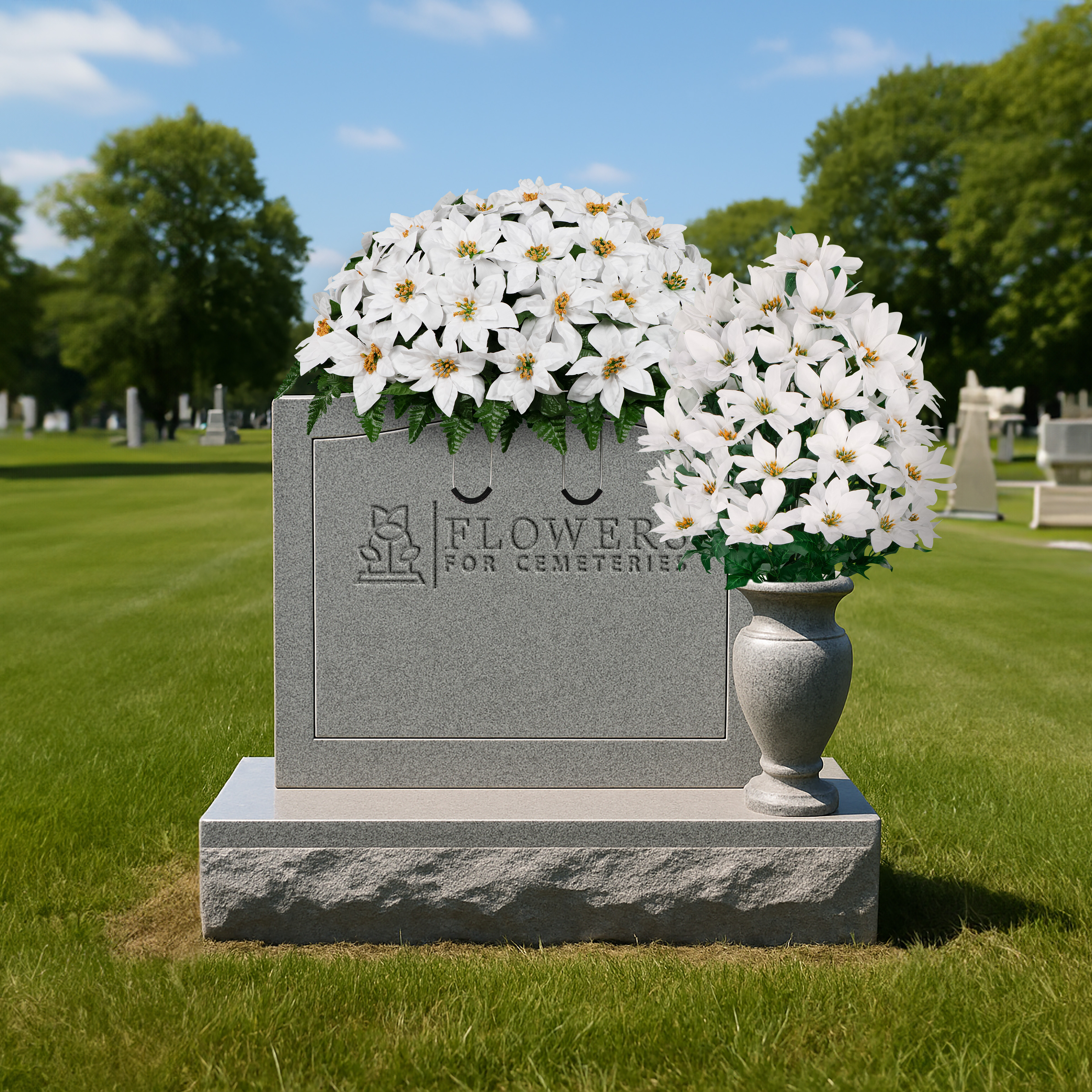 We take pride in knowing we provide long lasting and durable flowers for cemeteries. Our artificial flowers for cemetery vases are designed using UV resistant materials and non-bleed colors. Our flowers are weather resistant and guaranteed to last longer outdoors in the sun. The colors will not bleed onto the headstone when wet. We recommend changing the flower arrangements every 2 to 3 months to keep your Loved Ones memorial looking exceptional.