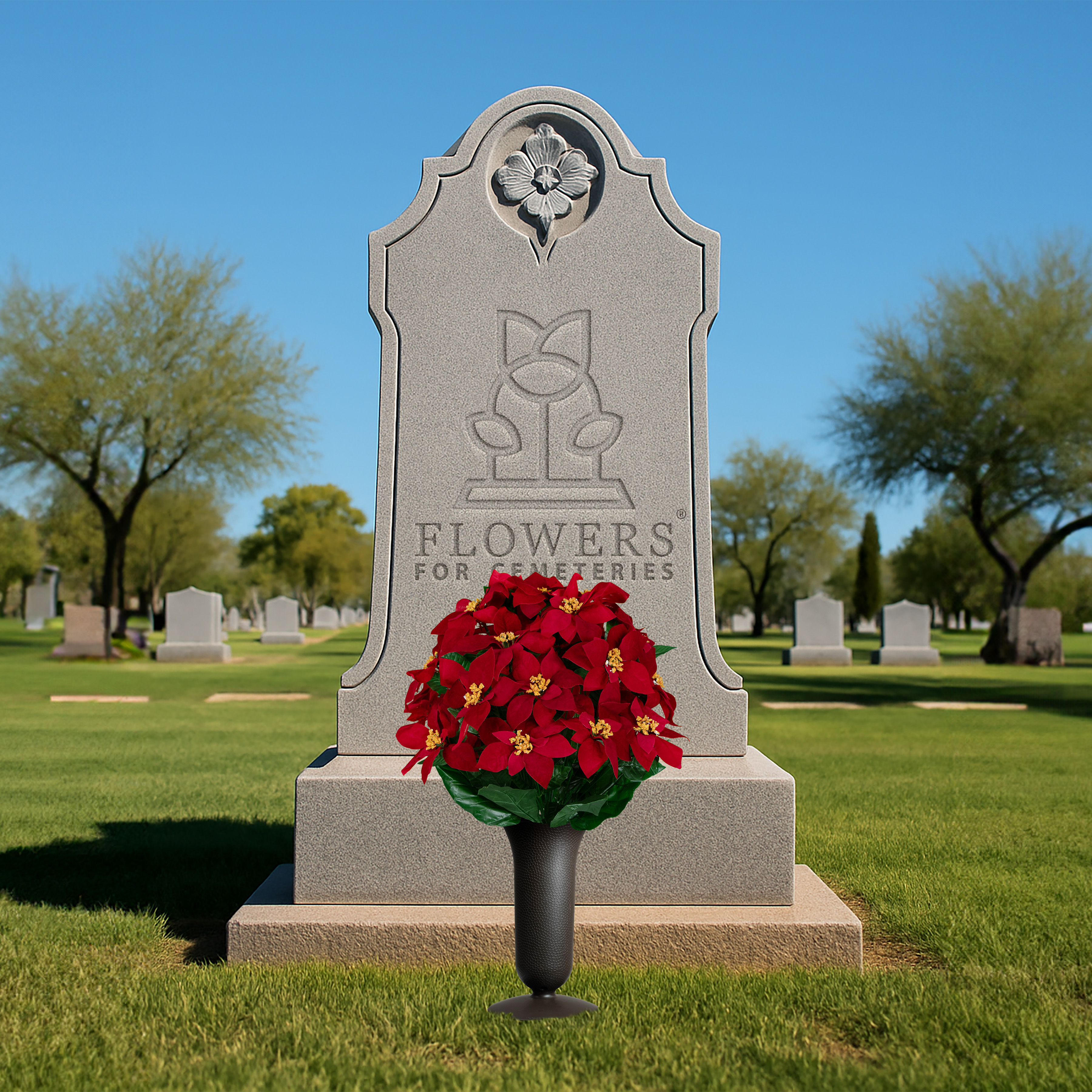 We take pride in knowing we provide long lasting and durable flowers for cemeteries. Our artificial flowers for cemetery vases are designed using UV resistant materials and non-bleed colors. Our flowers are weather resistant and guaranteed to last longer outdoors in the sun. The colors will not bleed onto the headstone when wet. We recommend changing the flower arrangements every 2 to 3 months to keep your Loved Ones memorial looking exceptional.