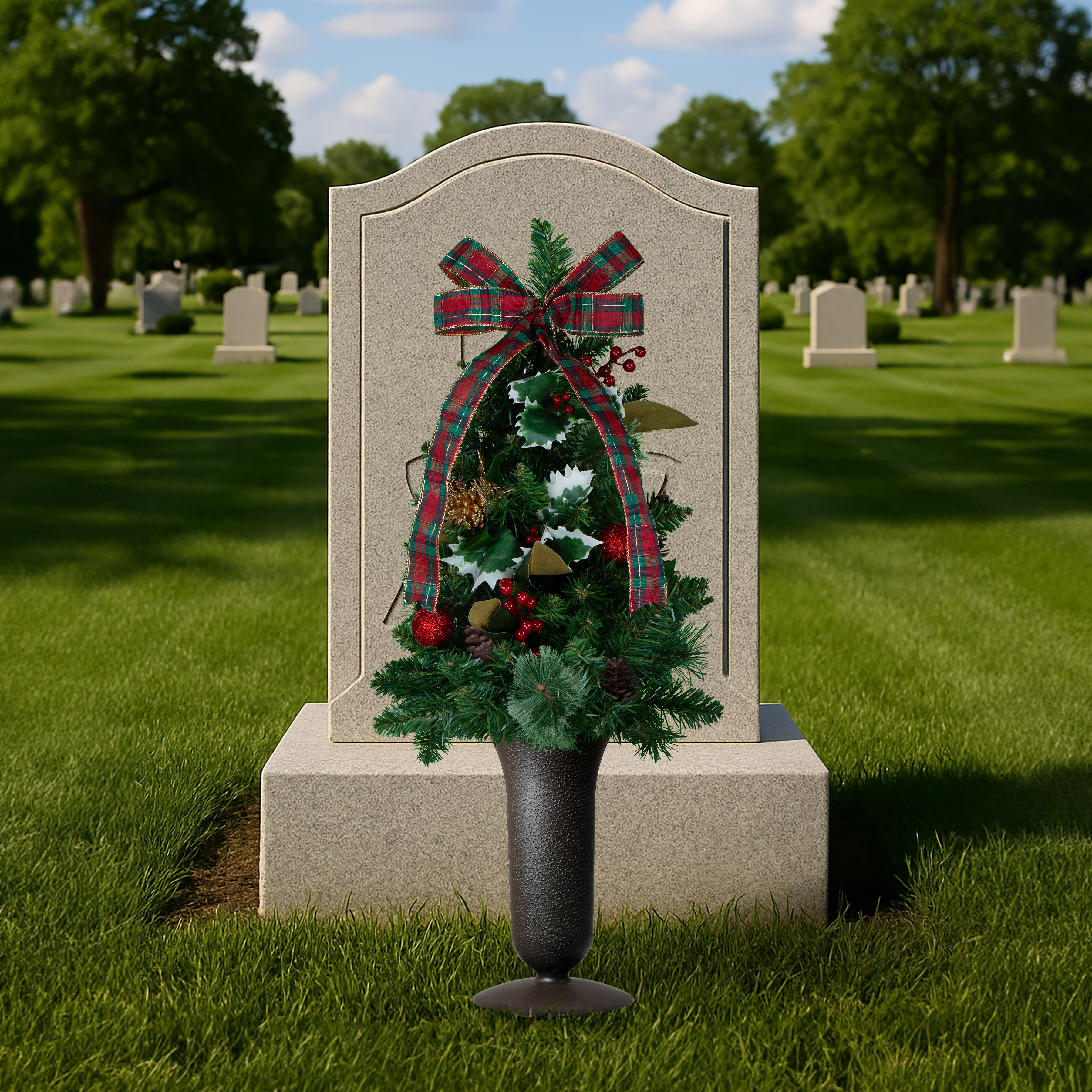 Brighten your loved one’s resting place with this beautiful artificial Christmas tree, thoughtfully designed for beauty, durability, and remembrance. Whether displayed as a heartfelt tribute at the cemetery or as a charming seasonal accent for your home, our trees are built to withstand wind, rain, and sunlight while showcasing a timeless symbol of joy and care.