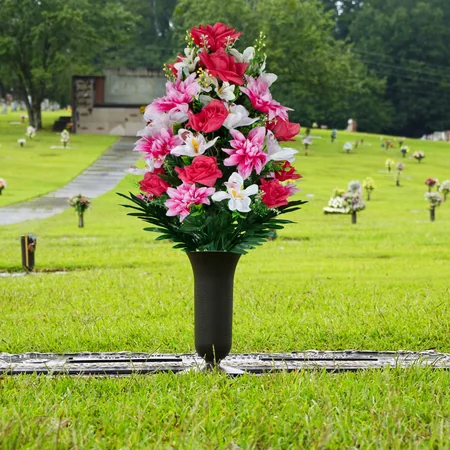 We take pride in knowing we provide long lasting and durable flowers for cemeteries. Our artificial flowers for cemetery vases are designed using UV resistant materials and non-bleed colors. Our flowers are weather resistant and guaranteed to last longer outdoors in the sun. The colors will not bleed onto the headstone when wet. We recommend changing the flower arrangements every 2 to 3 months to keep your Loved Ones memorial looking exceptional.