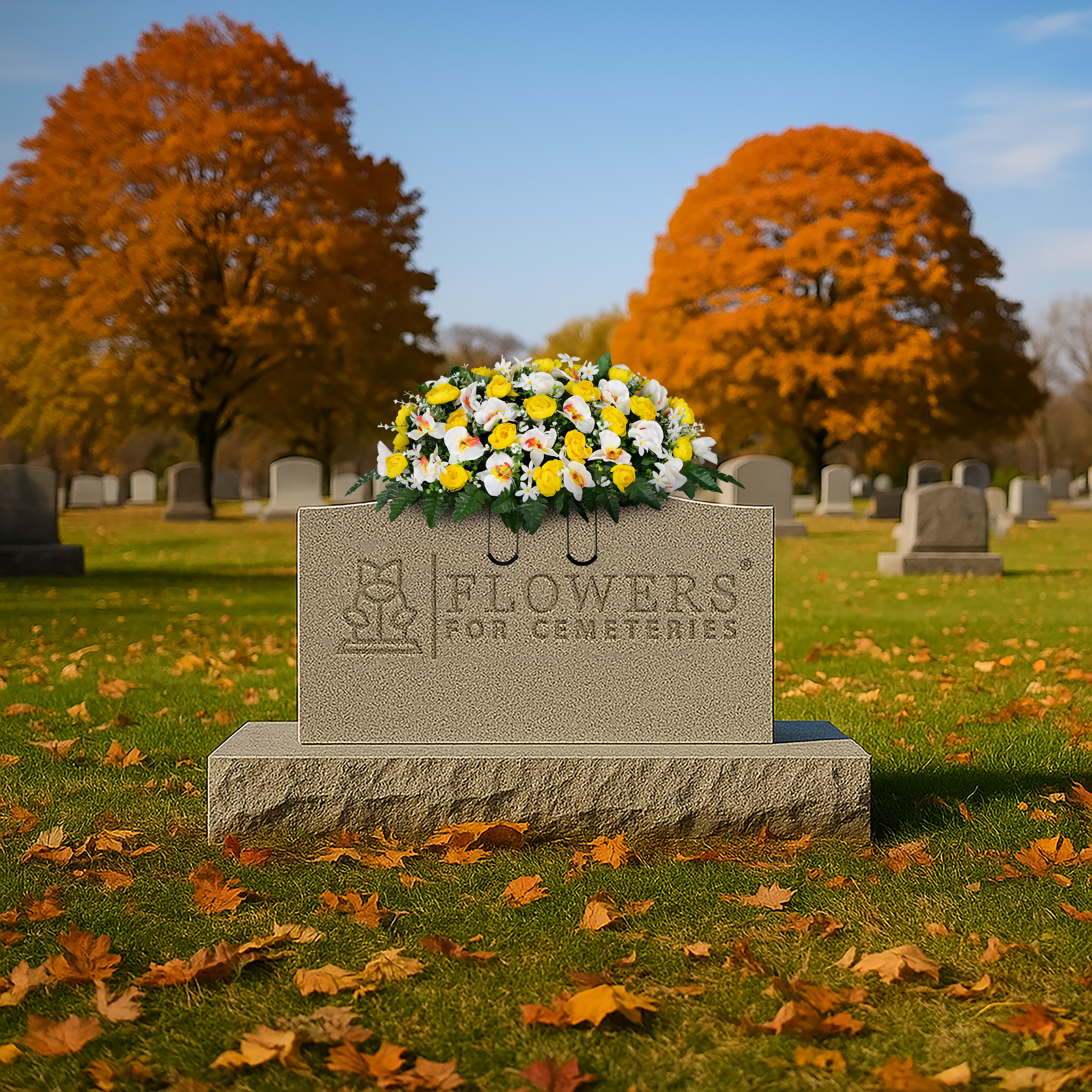 We take pride in knowing we provide long lasting and durable flowers for cemeteries. Our artificial flowers for cemetery vases are designed using UV resistant materials and non-bleed colors. Our flowers are weather resistant and guaranteed to last longer outdoors in the sun. The colors will not bleed onto the headstone when wet. We recommend changing the flower arrangements every 2 to 3 months to keep your Loved Ones memorial looking exceptional.